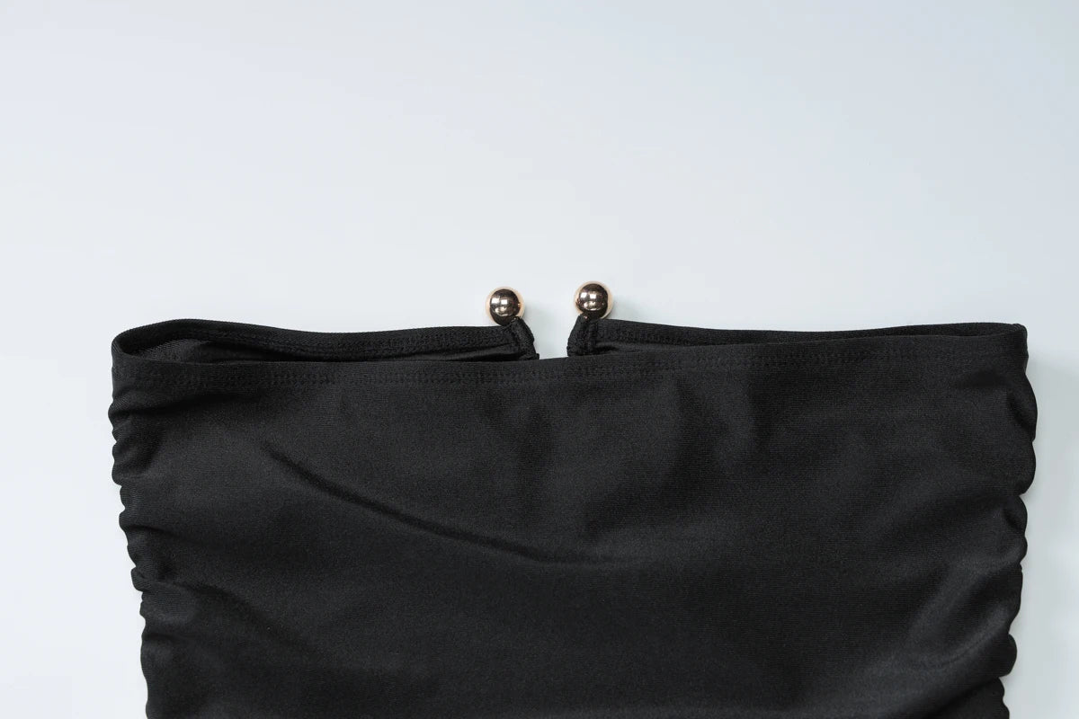 Dulzura Sleeveless Strapless Pleated Maxi Dress With Button Women’S Sexy Elegant Long Dress Party Club Office Spring Summer